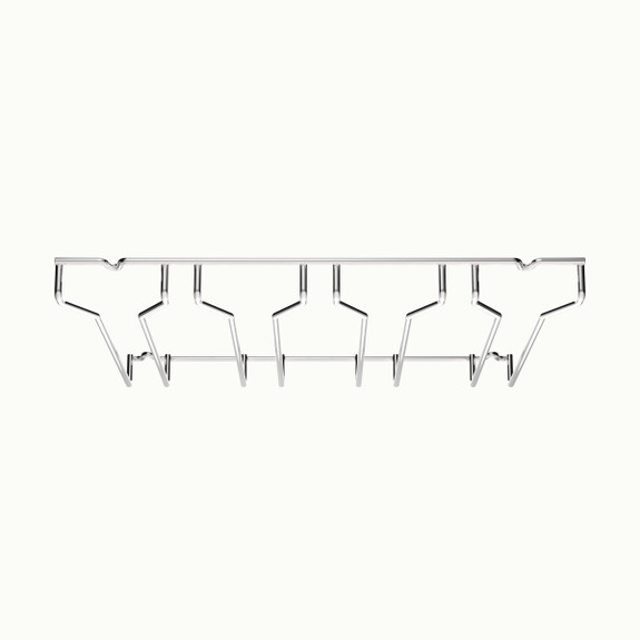Designed for versatile installation, it can be mounted beneath shelves and counters or overhead above the bar for quick, convenient access to glassware during service. The open-channel design ensures efficient drying and safe storage, especially in high-traffic environments where speed and accessibility matter.