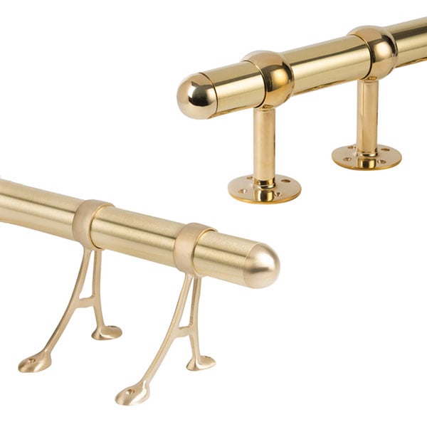 - Brushed Brass hides imperfections in the bar rail over time better than Polished Brass, and will not need to be wiped down as regularly.