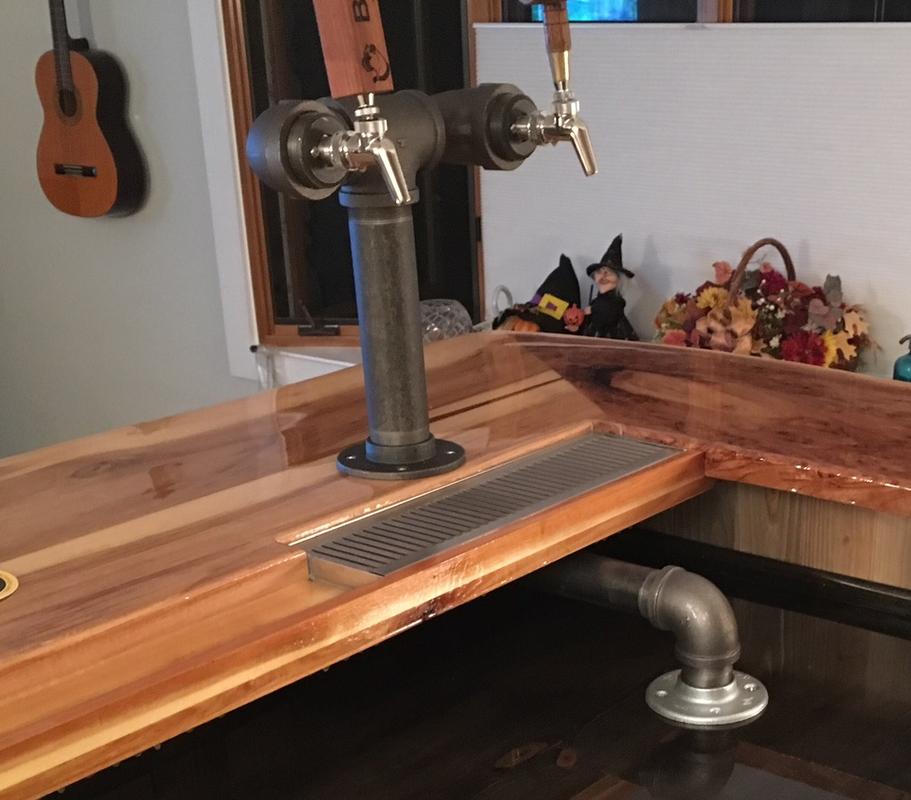 This black iron pipe beer tower offers a modern, rugged look, perfect for adding instant character to any home or commercial bar. To complete this style, you can also add an industrial black pipe bar foot rail throughout.