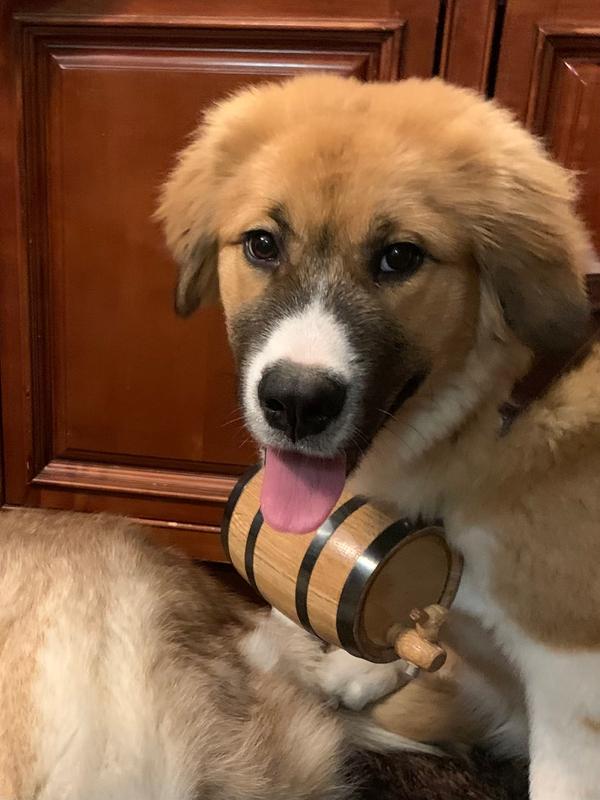 nice Barrel a little to big for our puppy sheās only 4 months old,but she will grow into it.The barrel is holding water no leaks.the only problem was all the wood chips when it was drilled out.I was able to clean them out but i expected better quality.